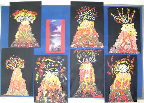 4. Vulkan in mehreren Schichten auf schwarzes Naturpapier kleben