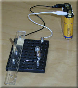 Du kannst deutlich erkennen, das Lineal kann keinen Strom leiten - denn das Kontrolllämpchen leuchtet nicht.